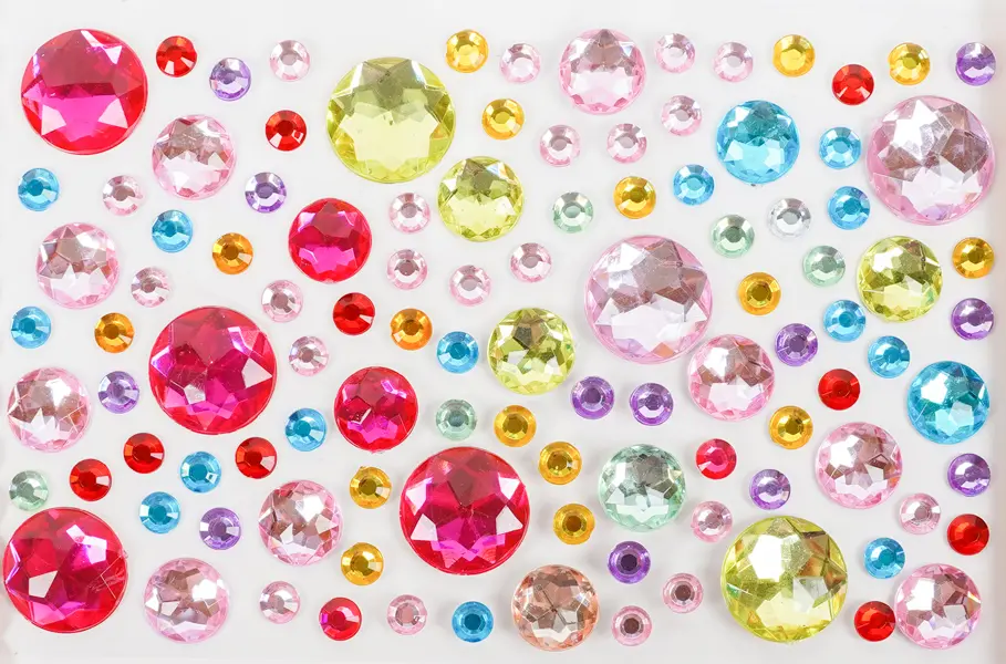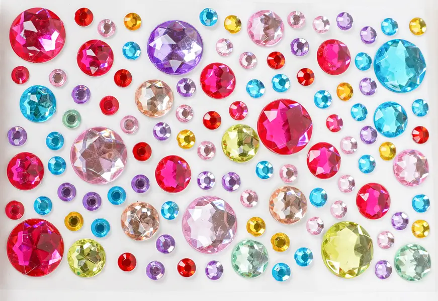 Toto balenie obsahuje 10 hárkov samolepiacich kamienkov s motívom kryštálikov. Kamienky sú v mixe farieb, veľkostí a tvarov, čo umožňuje široké kreatívne využitie. Kamienky na hárkoch s veľkosťou 9,5 x 15 cm sú ideálne na zdobenie prianí, denníkov, scrapbookingu, fotoalbumov, telefónov, tabletov, ale aj nechtov, vlasov a mnohých ďalších projektov.