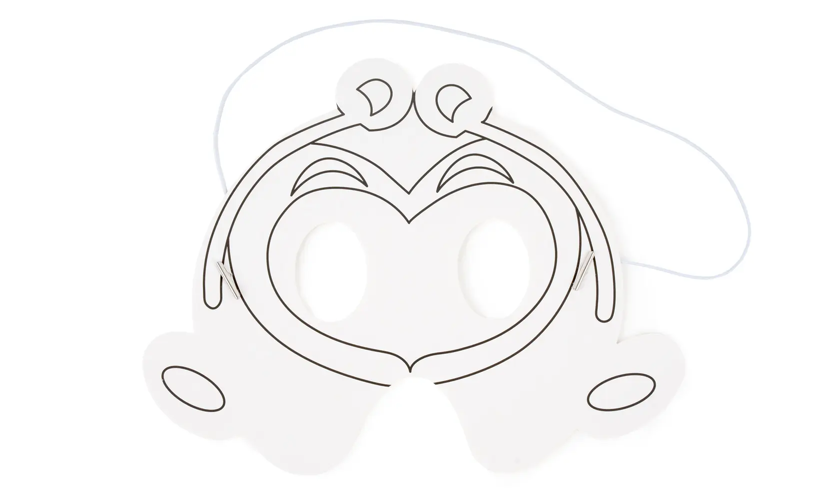 Papierová škraboška na tvár s motívom opičky je ideálna pre deti, ktoré si ju môžu samy vymaľovať podľa svojej fantázie. Škraboška je biela, má natlačené kontúry opičej tváre a je opatrená gumičkou pre jednoduché nasadenie. Jej rozmery sú približne 20 x 16 cm. Ide o skvelú kreatívnu pomôcku na detské párty, karnevaly alebo len tak pre zábavu.