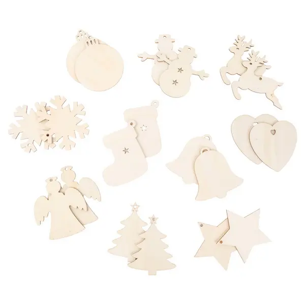 sada drevených vianočných ozdôb je perfektným základom pre kreatívne DIY projekty, ideálna pre deti aj dospelých, sada obsahuje 20 rôznych drevených tvarov (10 vzorov, 2 ks z každého vzoru), ako sú vianočný stromček, anjel, snehuliak, sob, snehová vl
