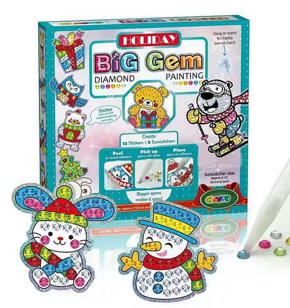 sada obsahuje 12 samolepiacich holografických vzorov a 2 väčšie vzory odrážajúce slnečné paprsky (suncatcher), akrylové kamienky rozdelené podľa farieb, plastovú nádobu na ľahšiu manipuláciu s kamienkami, plastový nástroj na ich nanášanie na vzory, d