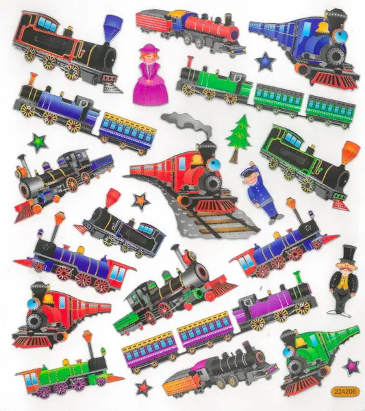 Papierové samolepky s motívom lokomotív a vlakov sú obsiahnuté v sade 26 kusov. Nájdeme tu rôzne farebné lokomotívy a vagóny, doplnené stromčekmi a hviezdami. Veľkosť jednotlivých samolepiek je približne 3 cm a sú umiestnené na hárku s rozmerom 15 x 17 cm. Sú ideálne na dekoráciu prianí, darčekov, denníkov, fotoalbumov, scrapbookingových projektov a ďalších kreatívnych výtvorov.
