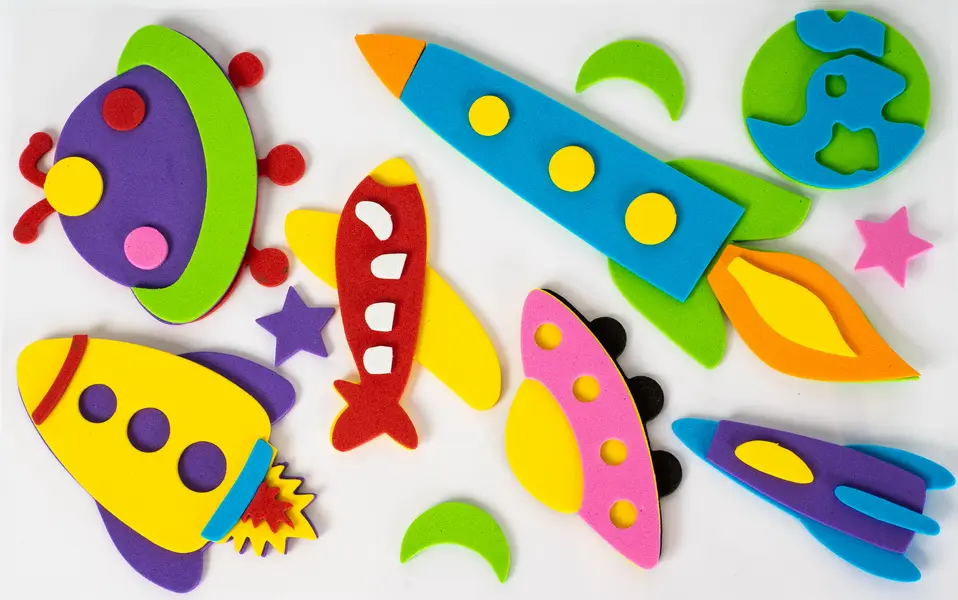 Penové 3D samolepky s motívom vesmíru sú obsiahnuté v balení 7 kusov. Nájdeme tu rakety, lietajúce taniere, planétu Zem a hviezdy. Veľkosť jednotlivých samolepiek sa pohybuje od 3 cm do 6 cm, hrúbka je 2 mm. Tieto samolepky sú ideálne na dekoráciu detských izieb, prianí, darčekov, denníkov, fotoalbumov, scrapbookingových projektov a ďalších kreatívnych výtvorov.