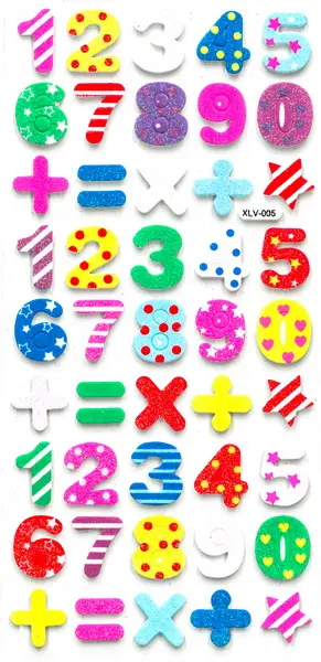 Penové trblietavé samolepky s motívom čísel a matematických symbolov sú obsiahnuté v balení 45 kusov. Nájdeme tu čísla 0-9 v rôznych farbách a so vzormi, doplnené symbolmi pre sčítanie, odčítanie, násobenie a rovnítko. Veľkosť jednotlivých samolepiek je približne 3 cm, hrúbka je 2 mm. Tieto samolepky sú ideálne na dekoráciu detských izieb, prianí, darčekov, denníkov, fotoalbumov, scrapbookingových projektov a ďalších kreatívnych výtvorov.