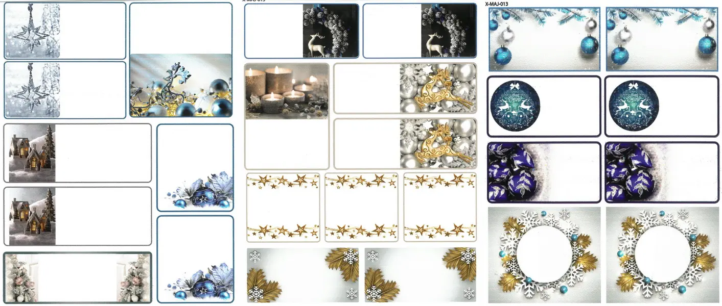 Tieto samolepiace menovky sú skvelým doplnkom na balenie vianočných darčekov. Balenie obsahuje 3 hárky s menovkami, pričom každý hárok má rozmer 15 x 19 cm. Samolepky majú krásne zimné a vianočné motívy, ako sú ozdoby, jelene, hviezdy a vločky, ktoré dodajú darčekom slávnostný vzhľad. Sú ideálne na jednoduché a rýchle označenie darčekov.