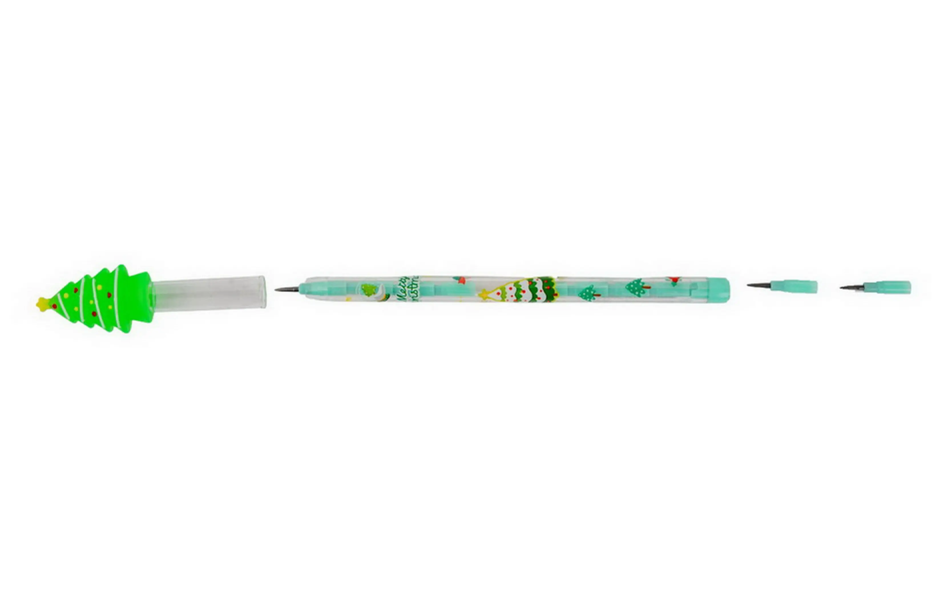 Ide o kolekciu ceruziek s vymeniteľnými hrotmi s veselými vianočnými motívmi zvieratiek. Ceruzky majú v hornej časti silikónovú figúrku, ktorá slúži zároveň ako integrovaná guma vo viečku (napr. soby, snehuliaci, Santa Clausovia a vianočné stromčeky). Ceruzky sú v mixe veselých farieb a sú ideálne ako drobný darček, odmena pre deti, alebo ako dekoračný predmet pre vianočné obdobie. Keďže ide o mix farieb a motívov, pokiaľ Vám záleží na konkrétnom motíve (napr. sob, snehuliak) alebo farbe, špecifikujte ho, prosím, čo najpresnejšie v poznámke k objednávke.