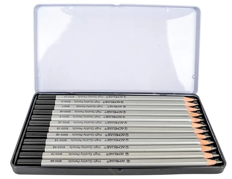 sada dvanástich šesťhranných grafitových ceruziek, široké použitie - na technické práce alebo umelecké činnosti, grafitové farby v 12 stupňoch tvrdosti 2H – 8B