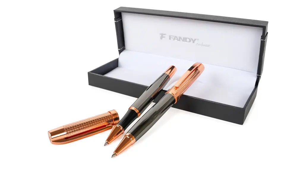 súprava kovového guľočkového pera a rolleru, guľočkové pero s otočným mechanizmom, roller s viečkom, vymeniteľná náplň typu F-Parker, širka stopy 0,7 mm (guľočkové pero), Ceramic, širka stopy 0,5 mm (roller), modrý atrament, luxusná dárková krabička