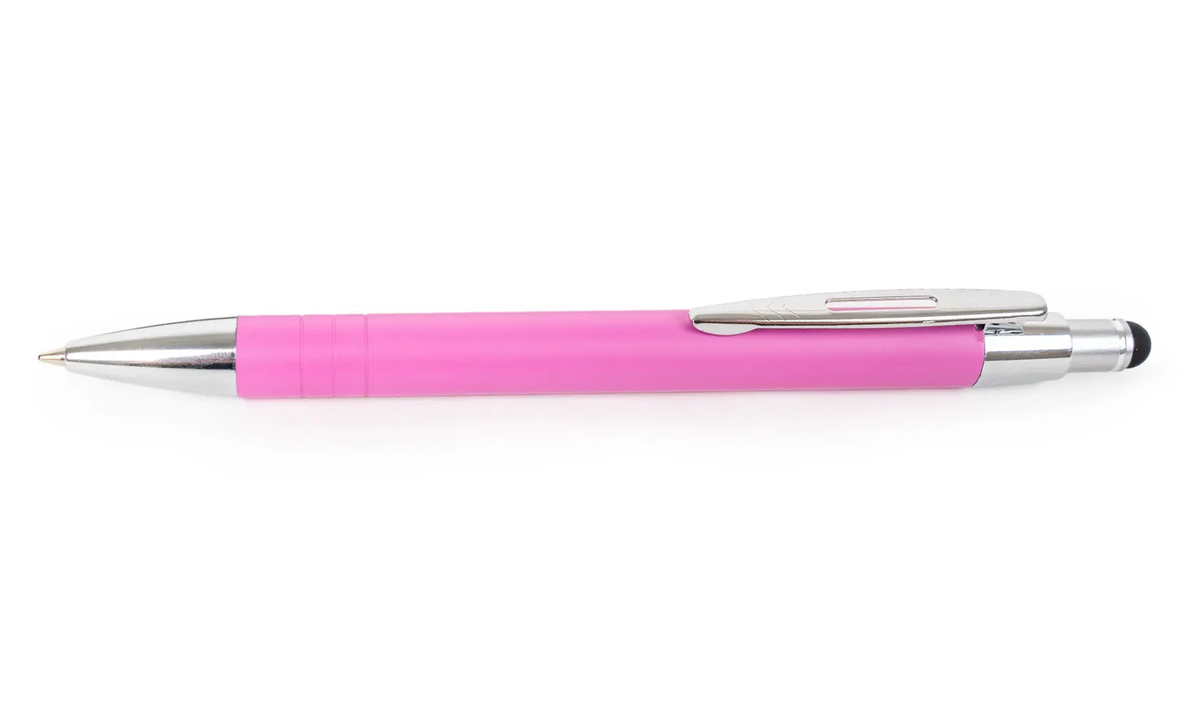 celokovové guľôčkové pero so strieborným lesklým hrotom a klipom, stláčací mechanizmus, vymeniteľná náplň F-Parker, satinované telo, dotykový hrot, modrý atrament, šírka stopy 0,7 mm, darčeková krabička