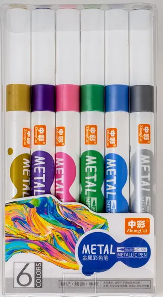 Ide o sadu 6 kusov štetcových metalických popisovačov s nylonovým hrotom so šírkou 3,8 mm. Sú ideálne na kreatívne projekty, kaligrafiu, maľovanie, krasopísanie, zdobenie prianí, fotoalbumov, darčekových škatuľiek a iných dekorácií. Popisovače zanechávajú metalický lesk a dajú sa použiť na rôzne povrchy, ako je papier, kartón, dekor dreva alebo kameň.