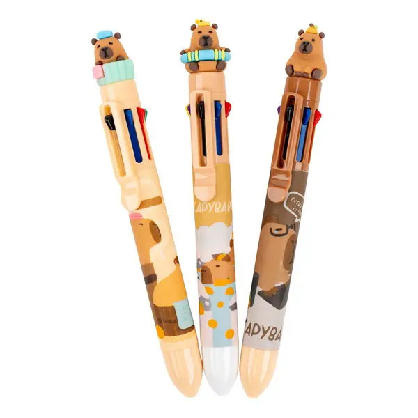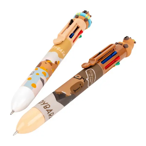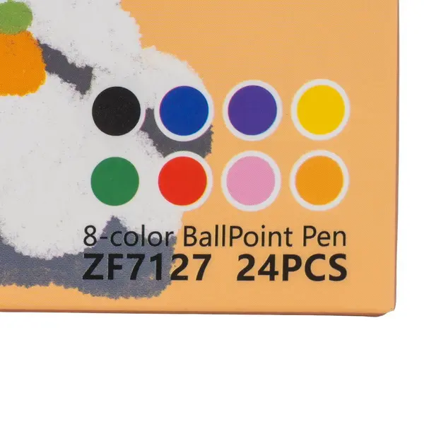 plastové guľôčkové pero, stláčací mechanizmus, osmikombinácia červená-modrá-zelená-čierna-oranžová-fialová-ružova-žltá, šírka stopy 0,7 mm, mix typov