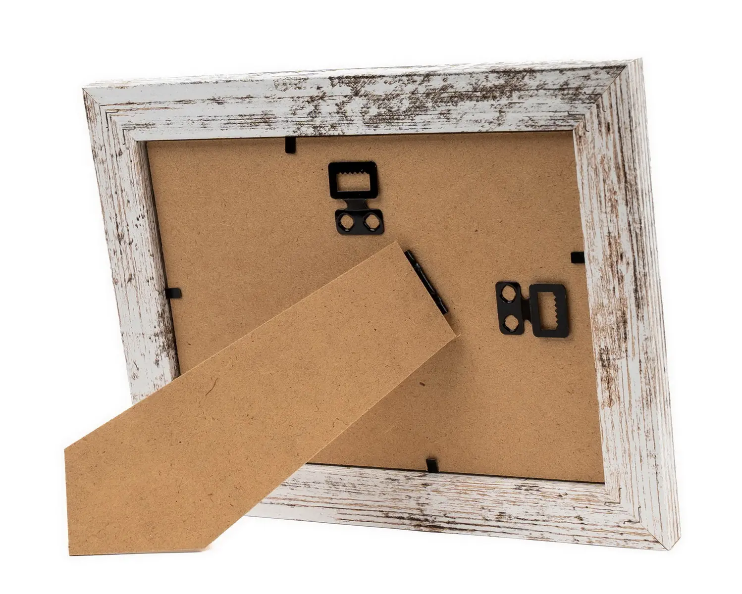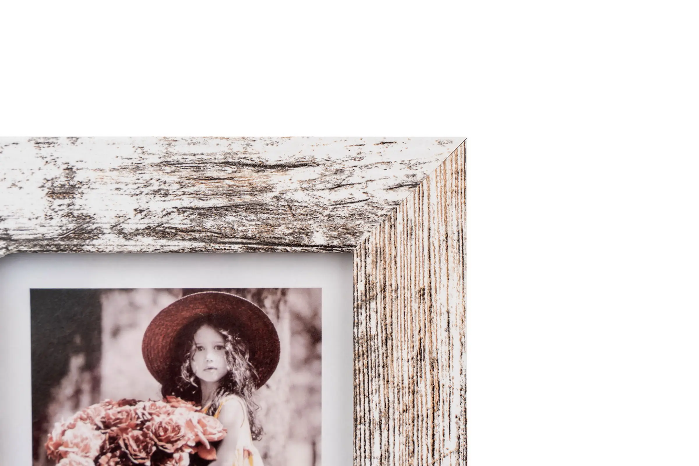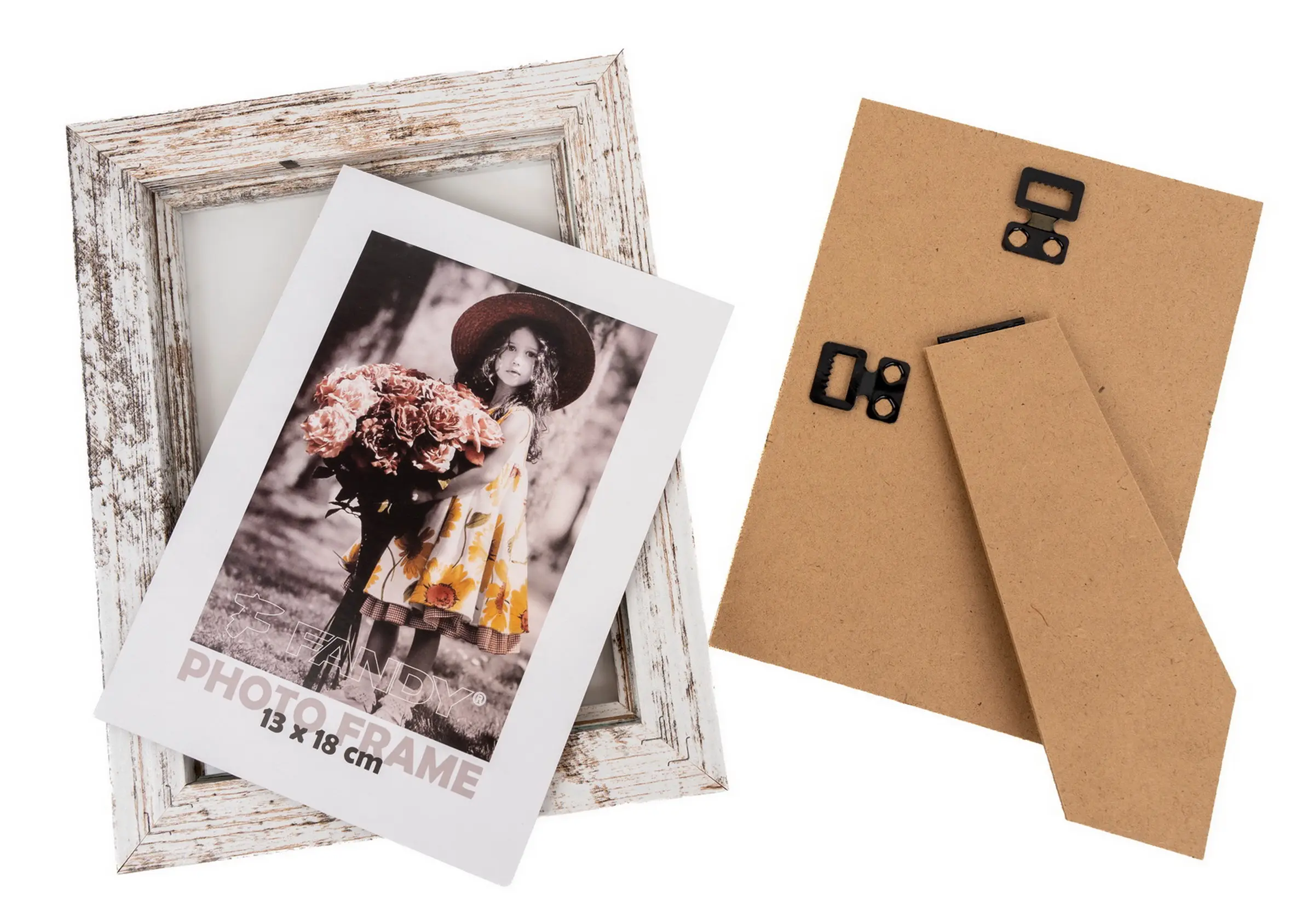 Pripomínajte si svoje najkrajšie okamihy s týmto elegantným fotorámikom Narvik z MDF v bielom vyhotovení s vintage dekórom dreva. Rámik má jednoduchý, ale nadčasový dizajn, ktorý sa hodí do každého interiéru. Je ideálny na fotografiu s rozmermi 13 x 18 cm. Celý rámik má rozmer 17,5 x 22,5 cm, pričom šírka lišty je 2,8 cm. Rámik je možné postaviť na komodu, poličku alebo nočný stolík, a taktiež ho môžete zavesiť na stenu, a to horizontálne aj vertikálne. Fotografia je chránená sklom a jednoducho sa vkladá zo zadnej strany.