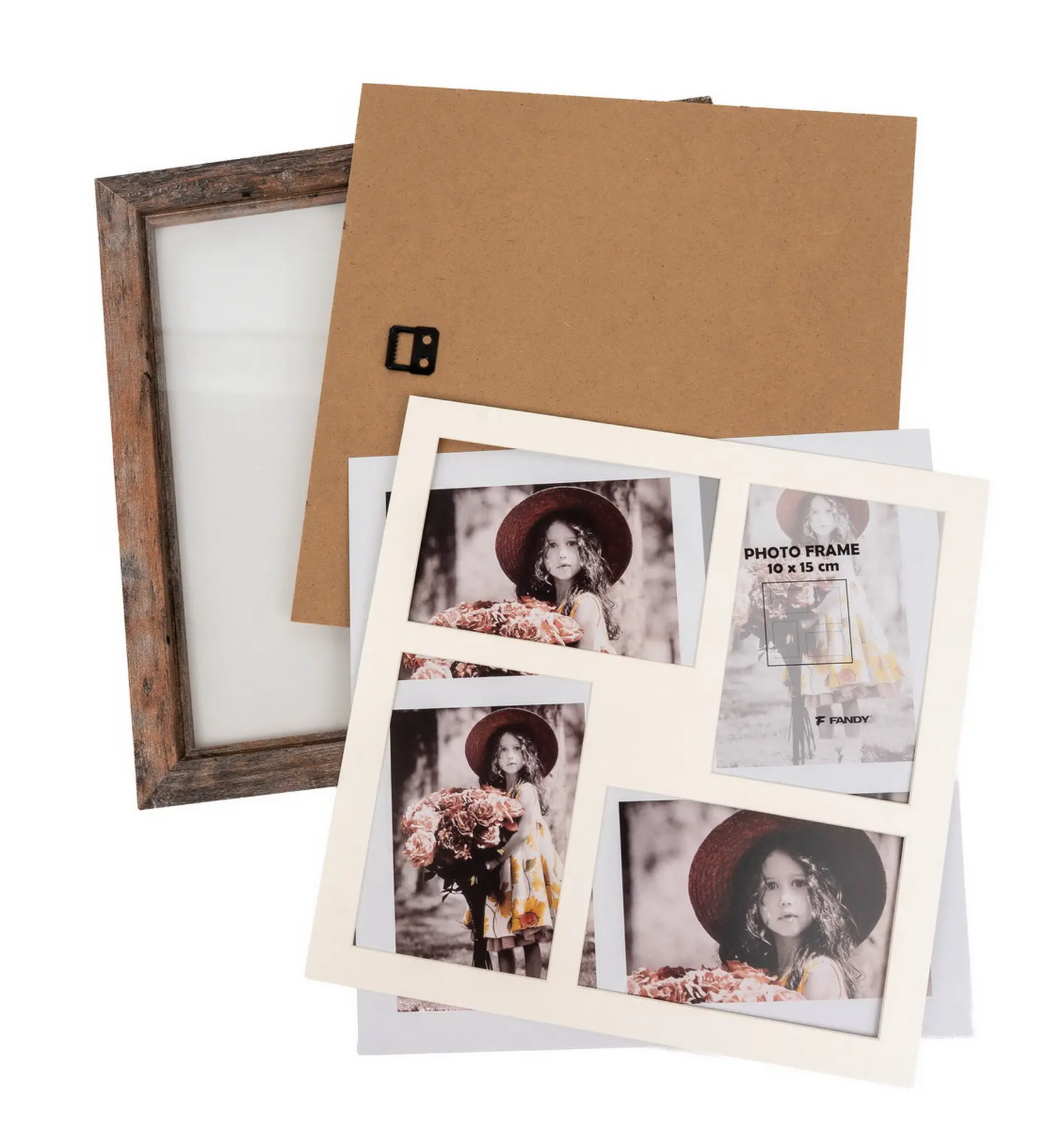 Pripomínajte si svoje najkrajšie okamihy s týmto fotorámikom Narvik Gallery v dekore dreva. Hnedý MDF rámik vo vintage štýle je ideálny na štyri fotografie – dve fotografie s rozmermi 10 x 15 cm a dve fotografie s rozmermi 15 x 10 cm. Bez pasparty je do rámika možné vložiť jednu fotografiu s rozmermi 30 x 30 cm. Celý rámik má rozmer 35 x 35 cm, pričom šírka lišty je 2,8 cm. Rámik je určený na zavesenie na stenu vertikálne. Fotografie sú chránené sklom a do rámika sa vkladajú jednoducho zo zadnej strany.