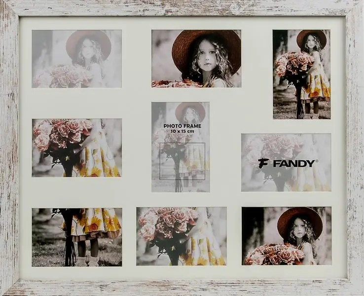 drevený rámček na 2 foto 10 x 15 cm a 7 foto 15 x 10 cm, rozmer rámčeka 56,6 x 46,6 cm, na zavesenie vertikálne i horizontálne, šírka lišty 2,8 cm, fotografia je krytá plexisklom