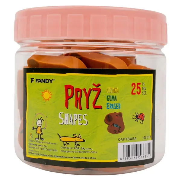 farebná školská guma, krásné detské motívy, 25 ks v praktické PVC dóze