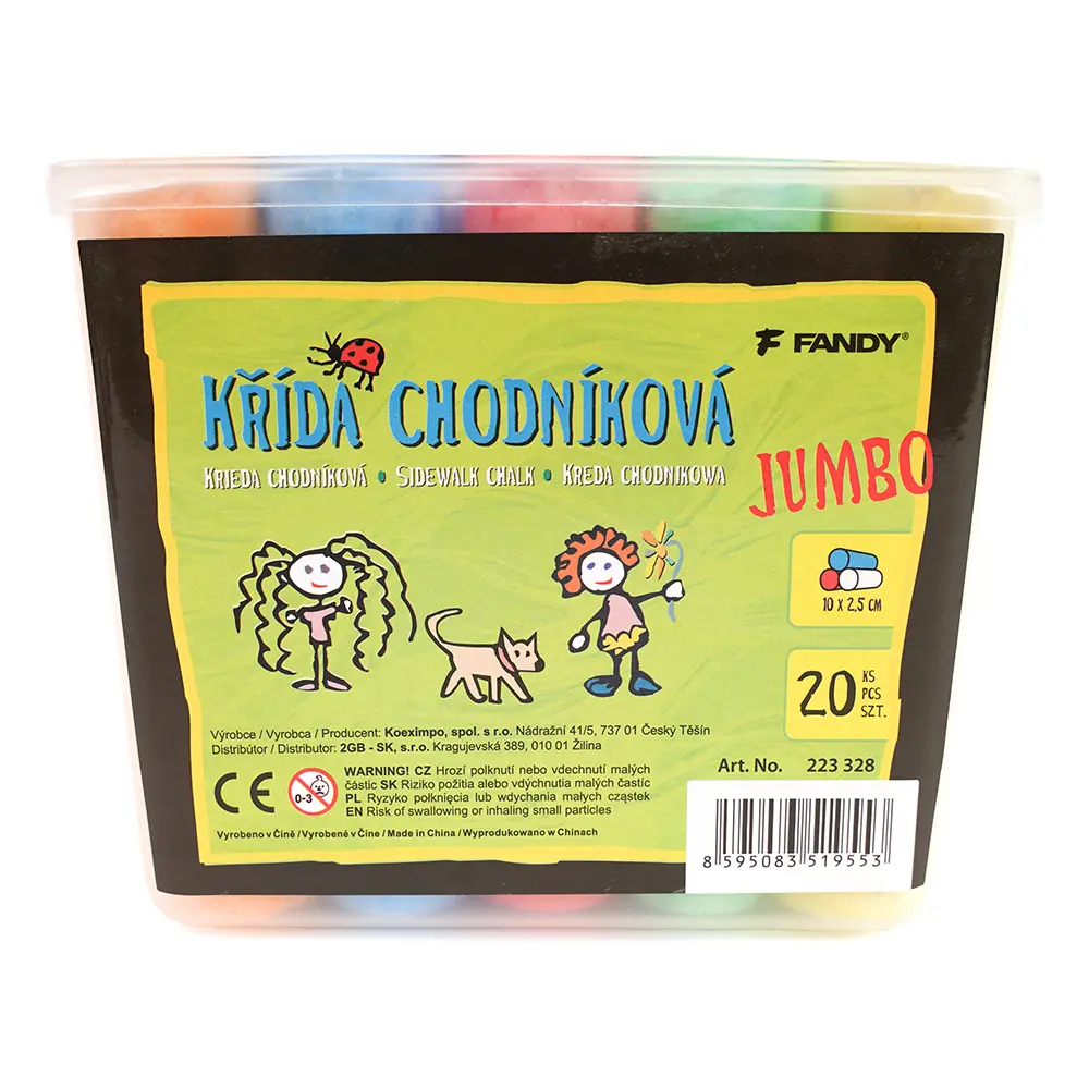 20 ks chodníkových kried v plastovom kýbliku, priemer kriedy 2,5 cm, dĺžka kriedy 10 cm, mix 5 farieb