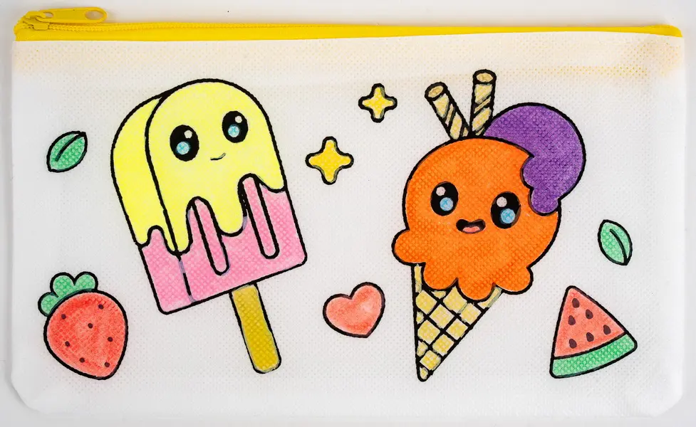 textilní etue s předlohou pro vymalování, se zipem, rozměr penálu 21,5 x 13 cm